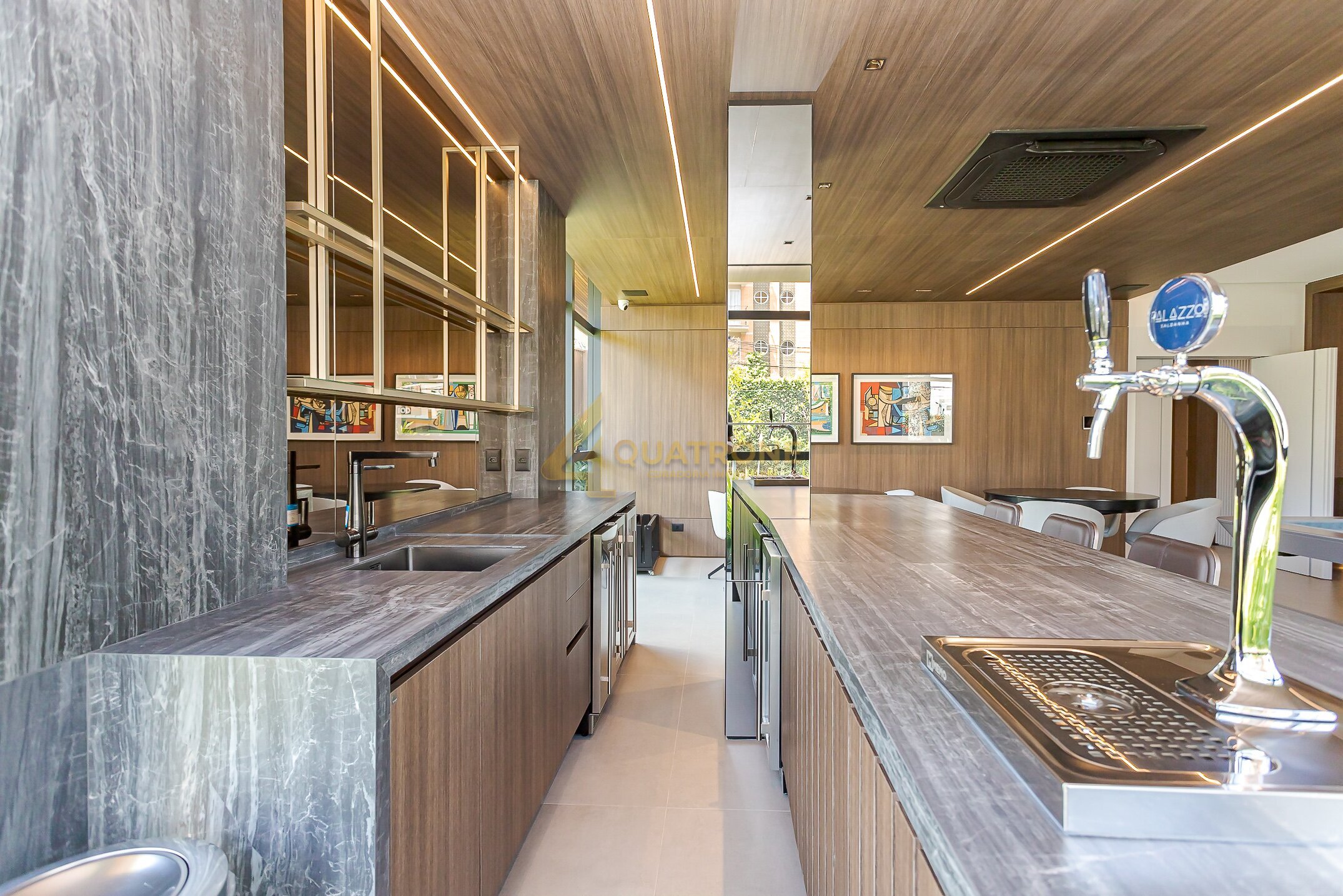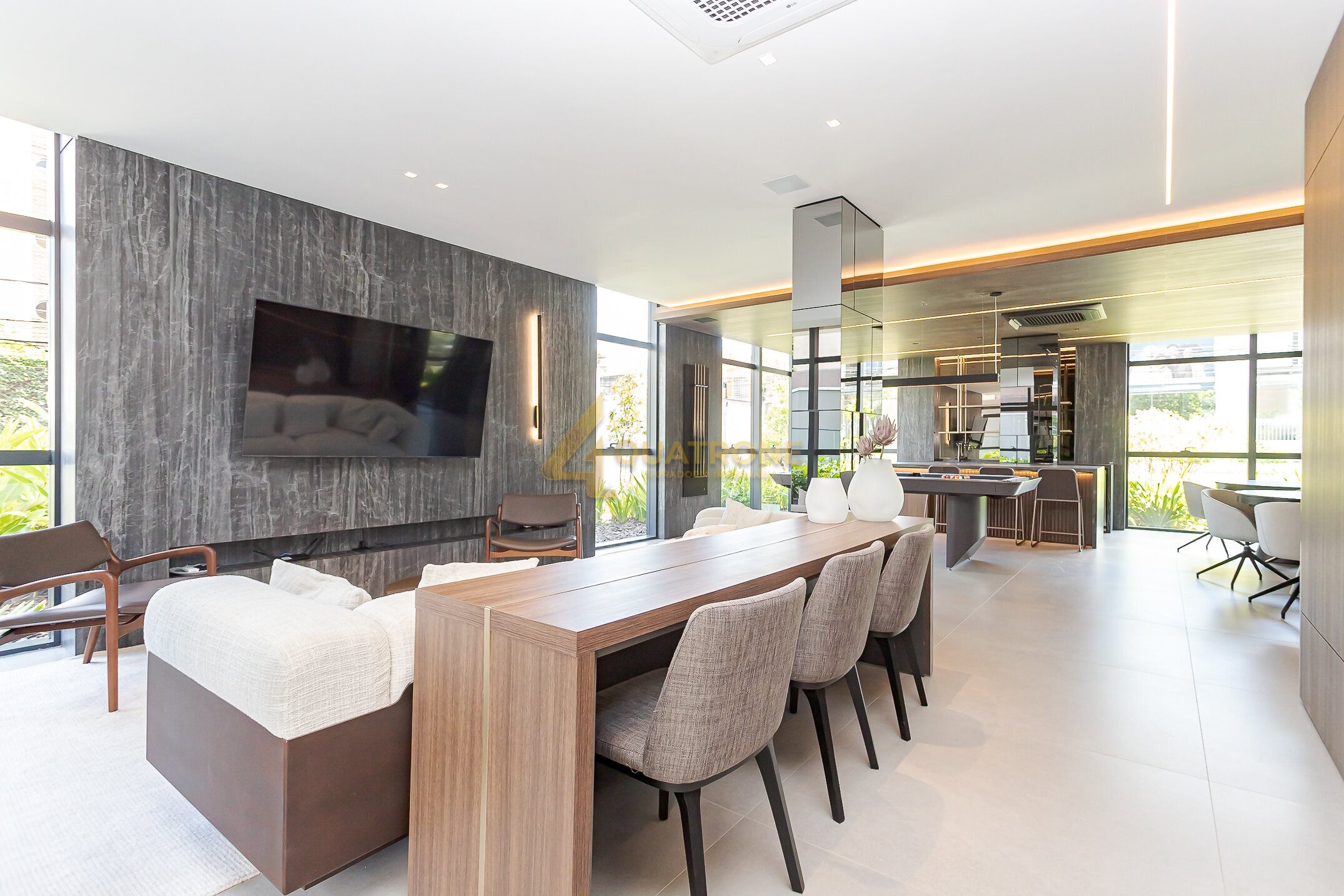 O condomínio acompanha o mesmo padrão: estrutura completa, equipada e decorada, com salão de festas gourmet, piscina aquecida, sport bar, sauna e espaço delivery, traduzindo praticidade e lifestyle contemporâneo.