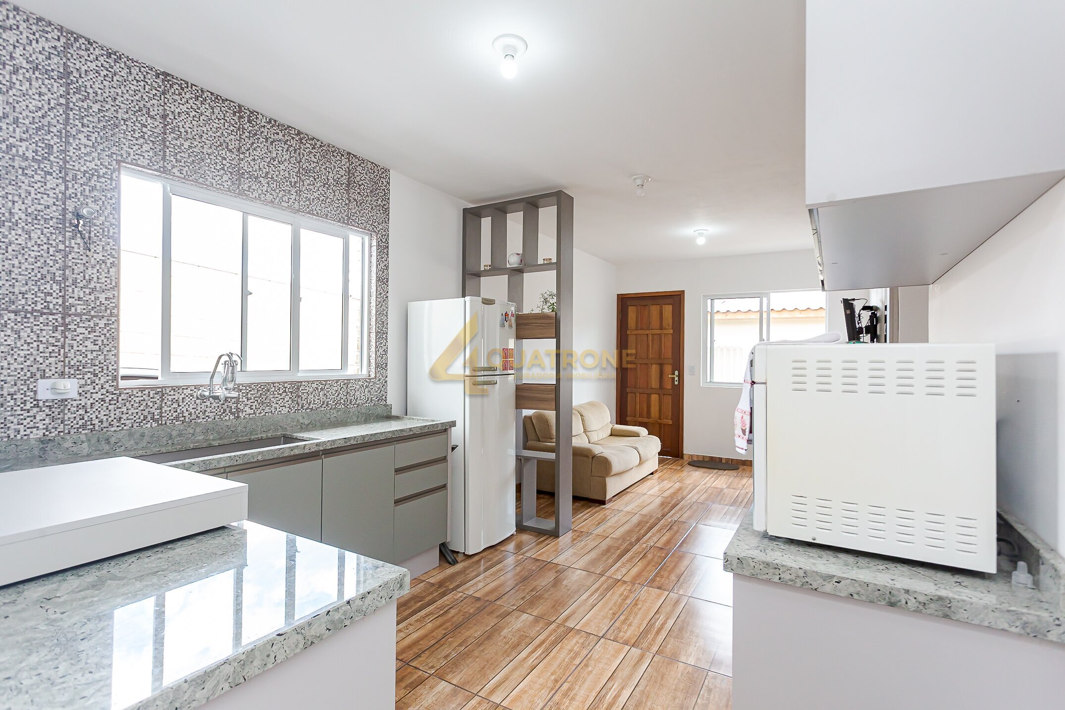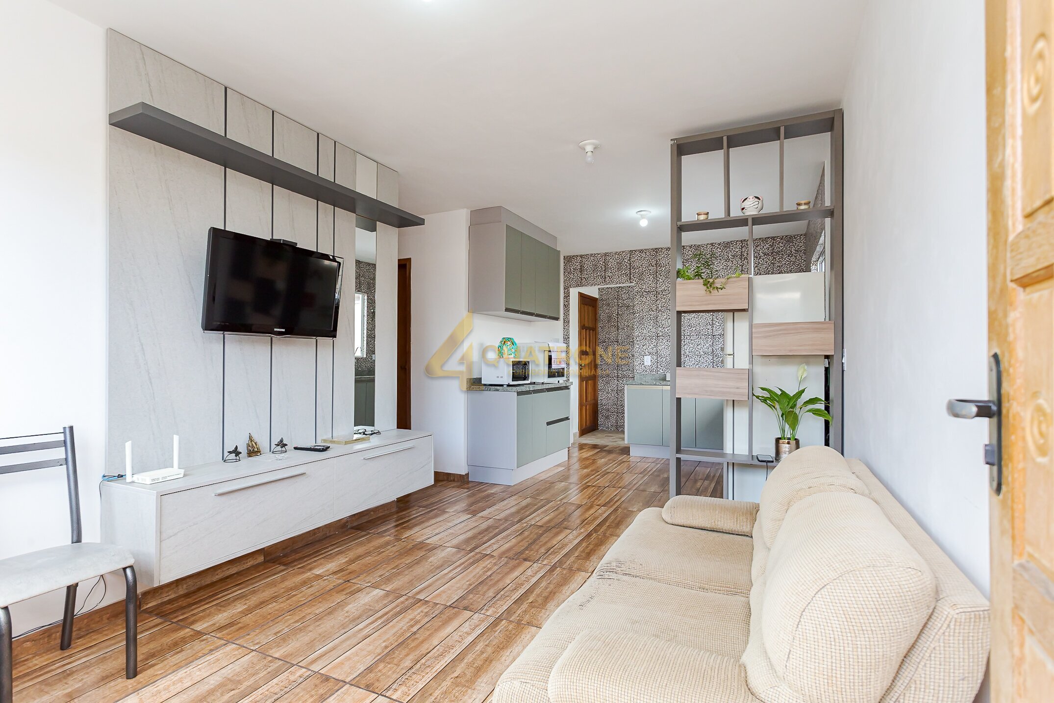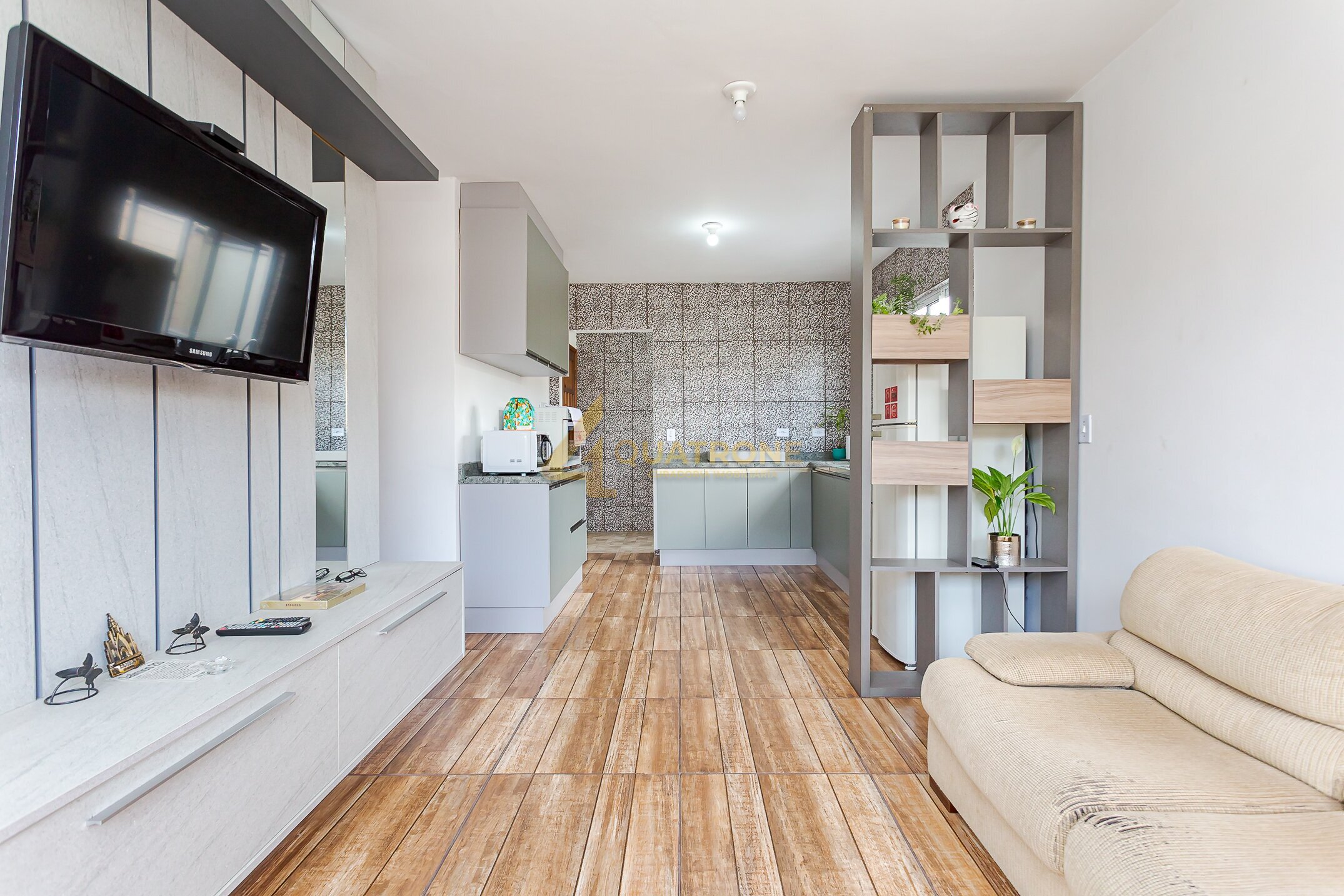 O imóvel conta com sala ampla, bem iluminada, integrada a uma cozinha estilo americana, proporcionando melhor aproveitamento dos espaços.