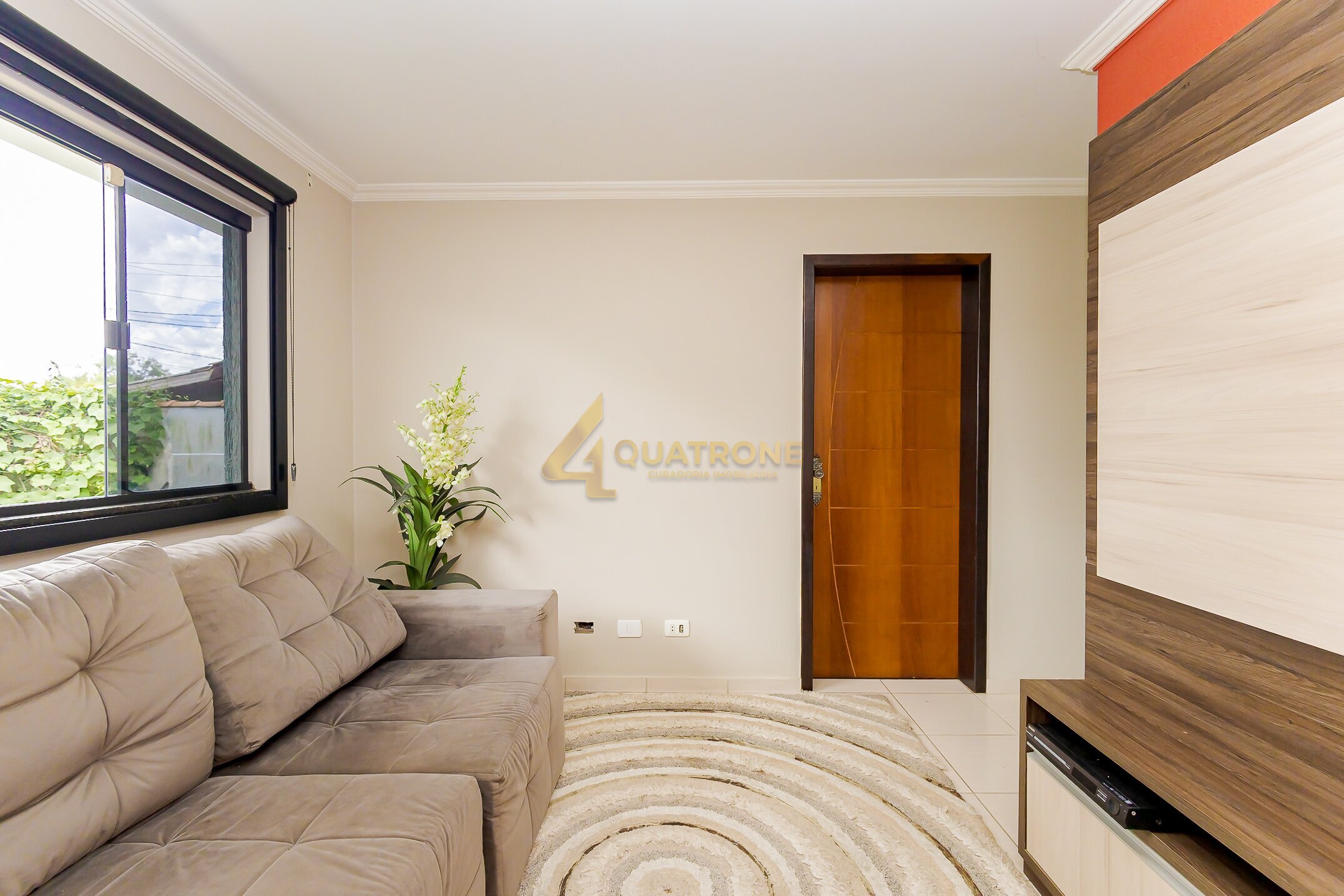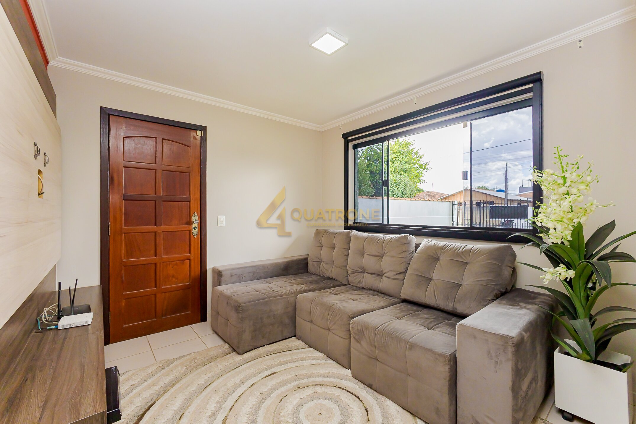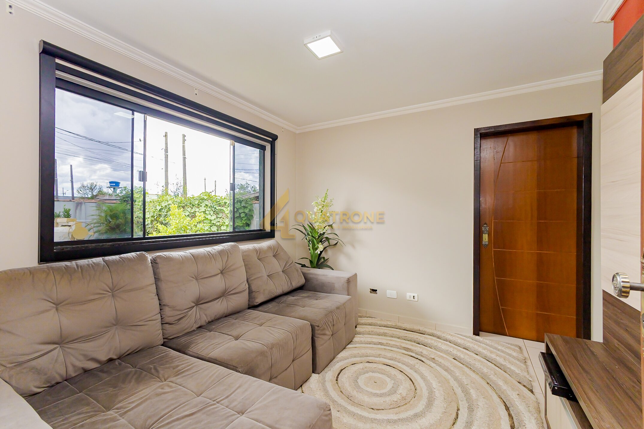 • Jardim frontal e sala de estar acolhedora