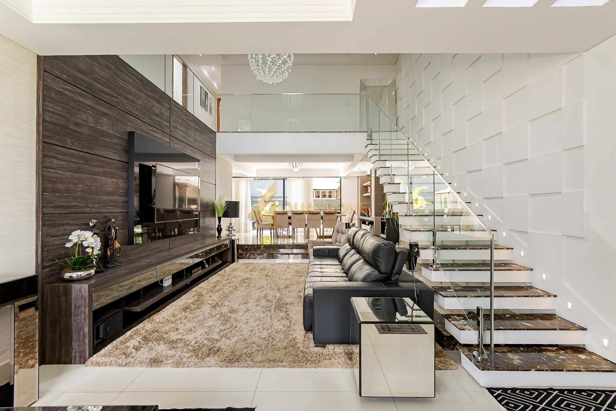 São 270m² privativos distribuídos de forma inteligente em um projeto que valoriza amplitude, iluminação e integração. Logo na entrada, o impacto: pé direito duplo na sala de estar, criando uma atmosfera imponente e sofisticada.