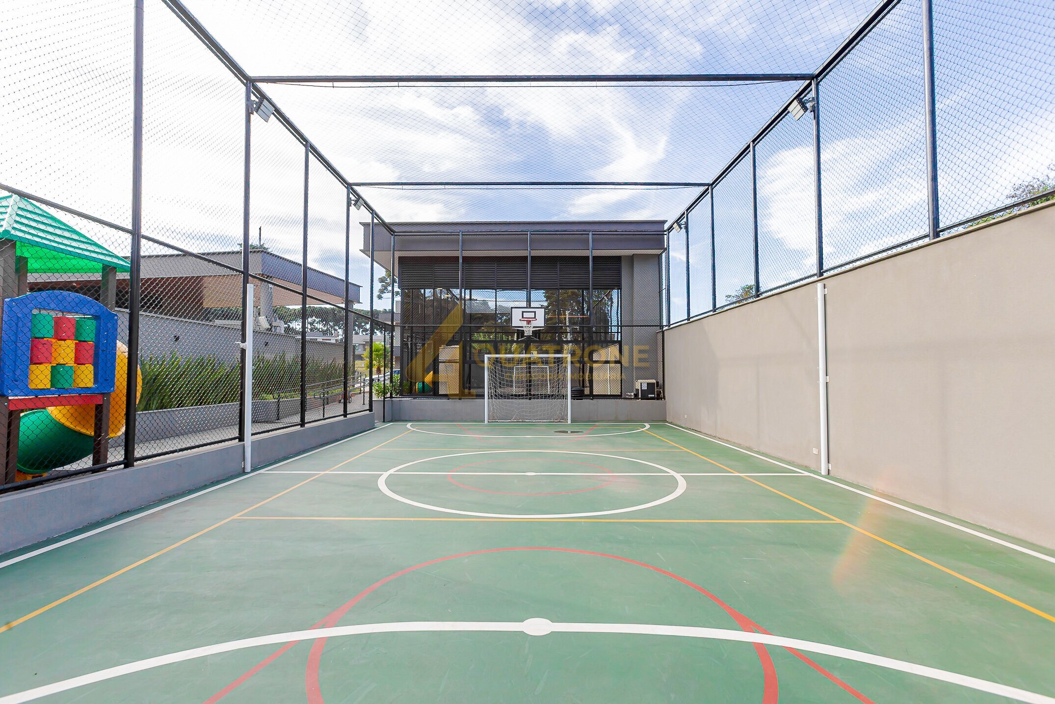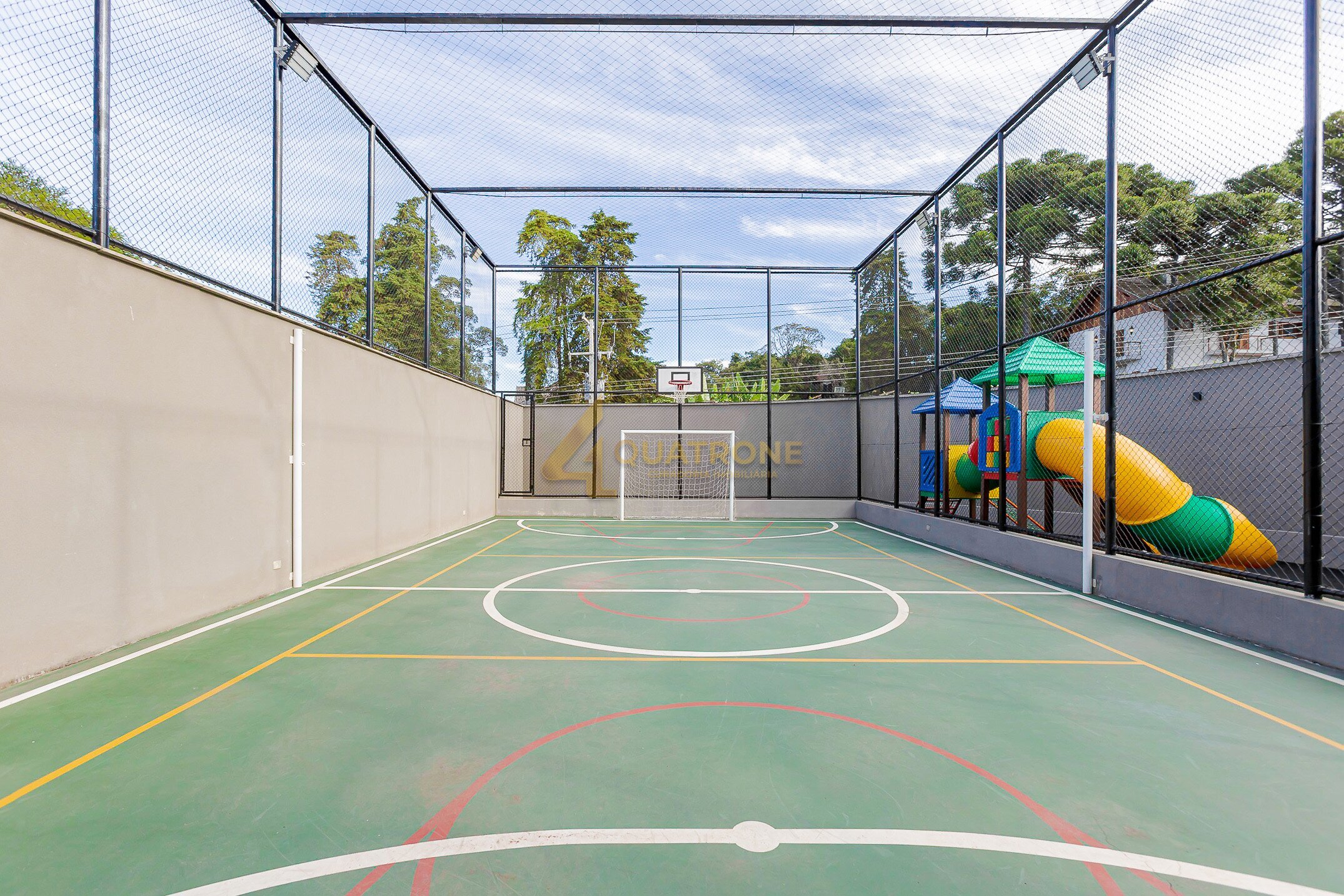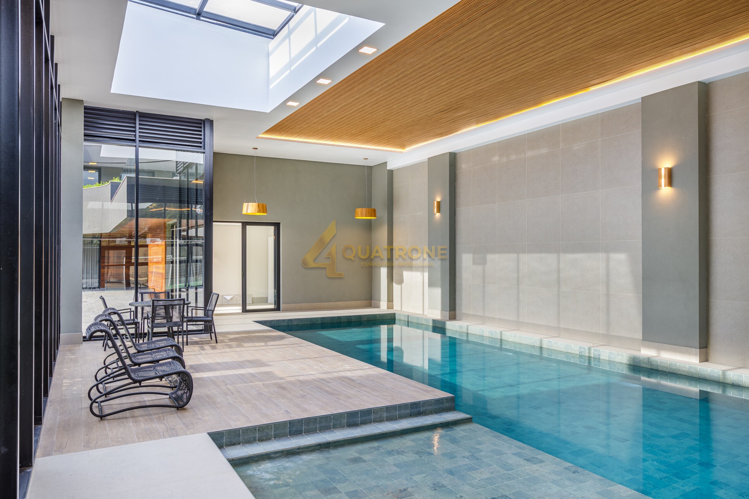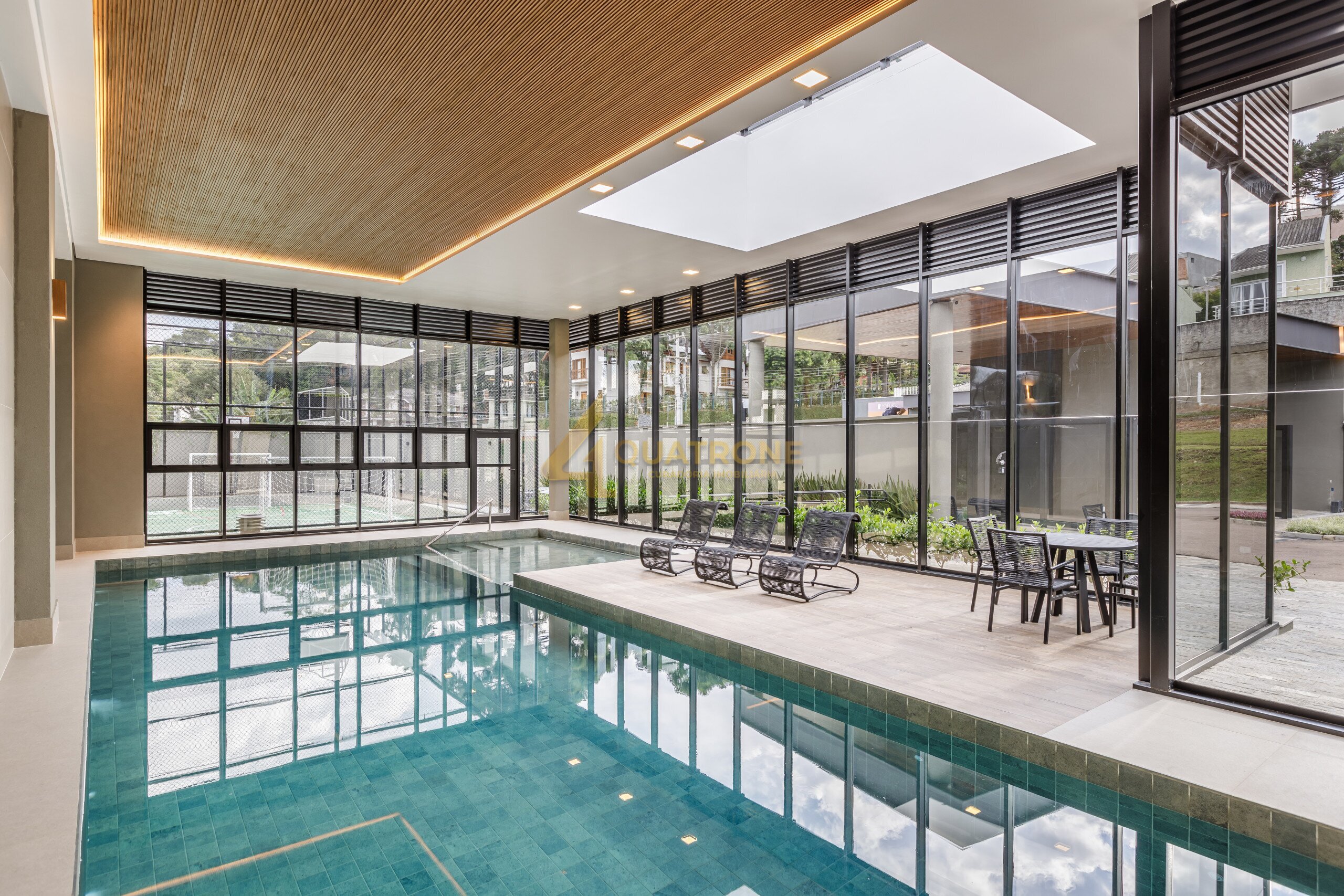 O condomínio oferece uma infraestrutura completa, com espaço gourmet, salão de festas, sauna, piscina coberta e aquecida, ideal para uso em todas as estações, além de playground e quadra poliesportiva, compondo um ambiente que complementa perfeitamente a proposta da residência.